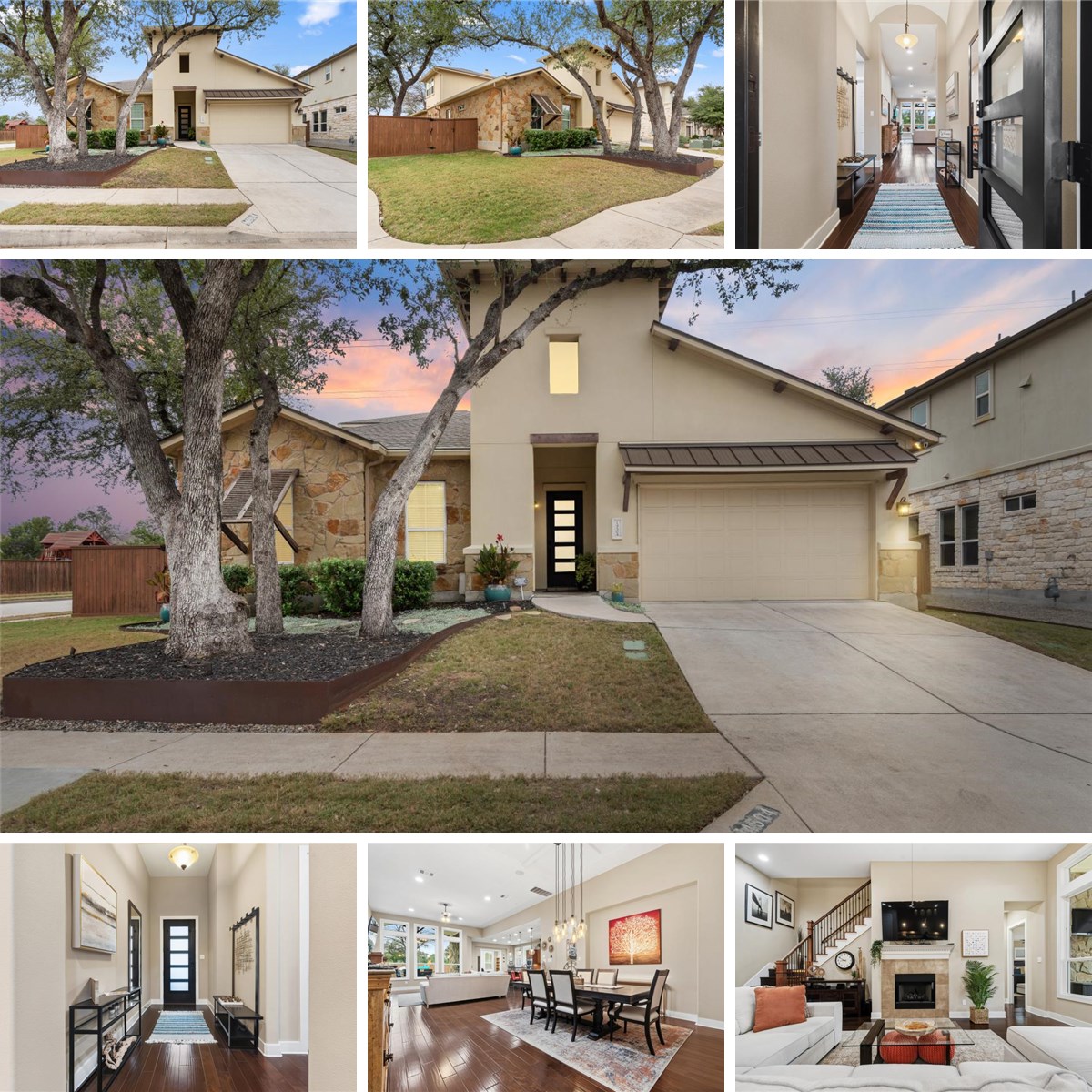 This thoughtfully designed 1.5-story home lives like a single story, with most daily living on the main level and a private upstairs retreat. Offering approximately 3,445 sq ft, the home features 4 bedrooms, with 3.5 bedrooms. The open layout centers around a spacious family room with gas fireplace, flowing into a full-size dining area and well-appointed kitchen with gas cooking, large island, built-in oven, stainless steel appliances, pendant and flush-mount lighting, tray ceilings, and tall windows overlooking the backyard. The private primary suite is located at the back of the home and offers bump-out windows, dual vanities, jetted soaking tub, oversized walk-in shower with dual showerheads, and a large walk-in closet with his-and-hers sections plus extra storage. Upstairs features a media room with full bath and attic access, perfect as a bonus space, guest retreat, or man cave. One front bedroom includes built-in bookcases and a pop-out desk, ideal for a home office or creative space. Enjoy outdoor living on the covered patio with ceiling fan, mounted TV, and gas line, overlooking a resort-style dipping pool with waterfalls and in-floor self-cleaning jets, privacy fencing, mature trees, and landscape lighting. Additional highlights include corner lot, stone and stucco exterior, roof replaced in 2021, oversized tandem 2.5-car garage, and smart-home features including app-controlled pool, irrigation, garage door, Ring doorbell/cameras, and select lighting.
